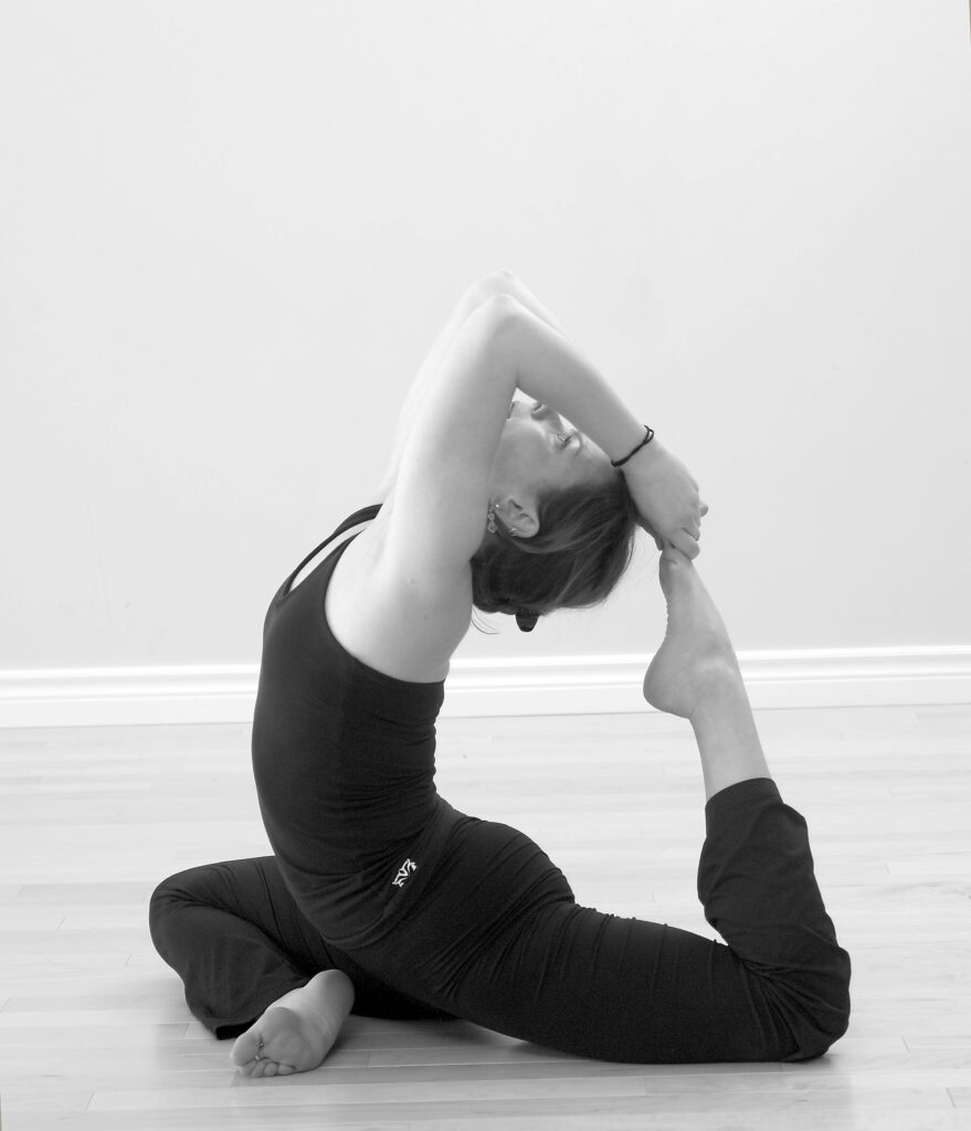 In this photo, I’m demonstrating a posture called Eka Pada Rajakapotasana. A posture that’s always felt symbolic to me, even it I didn’t fully understand it. Someone once explained it like this: The feet represent the mundane, the messy, the very human stuff we have to move through. And the head symbolizes the divine, the part of us connect to something bigger. When the feet and head come toward each other, it’s not about making them meet in a big, deep pose. It’s about integration. About meeting yourself where you are.